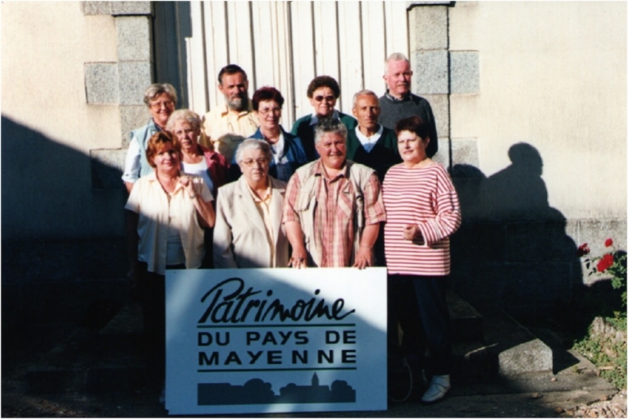 4 octobre 2000, l'équipe du Patrimoine du Pays de Mayenne pose devant la porte de la chapelle du Couvent de la Visitation, son nouveau domaine.