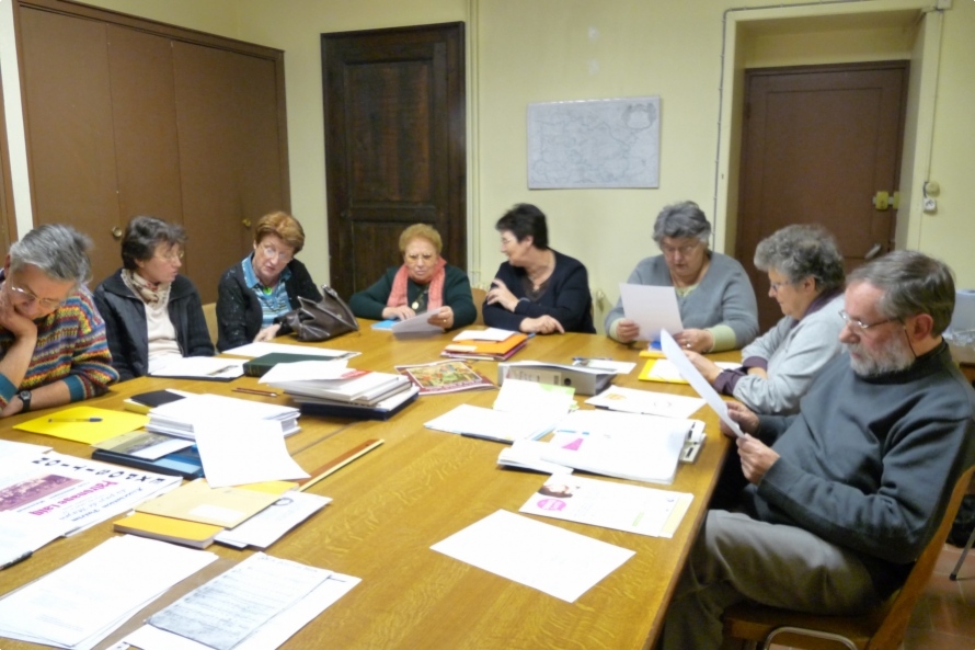 Séance de travail : Patrimoine du Pays de Mayenne écrit et met au point la chanson du randonneur