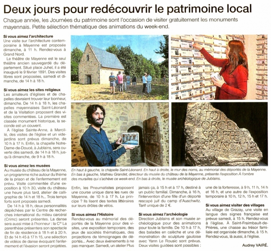 Cela permettra en outre aux guides du Patrimoine du Pays de Mayenne, tous bénévoles, de profiter du samedi pour découvrir le patrimoine à titre personnel.