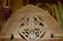 - Linteau constitué d'une pierre tombale (partie ancienne, nef)