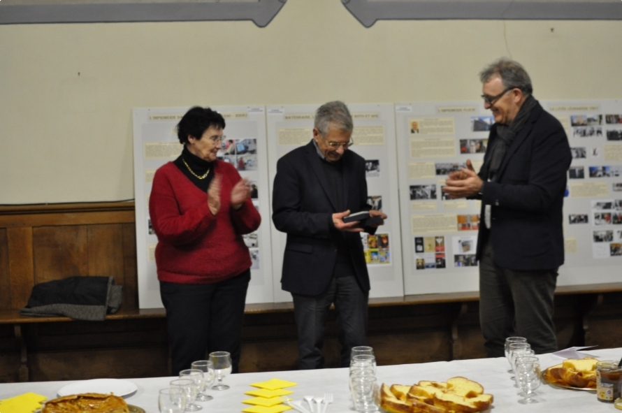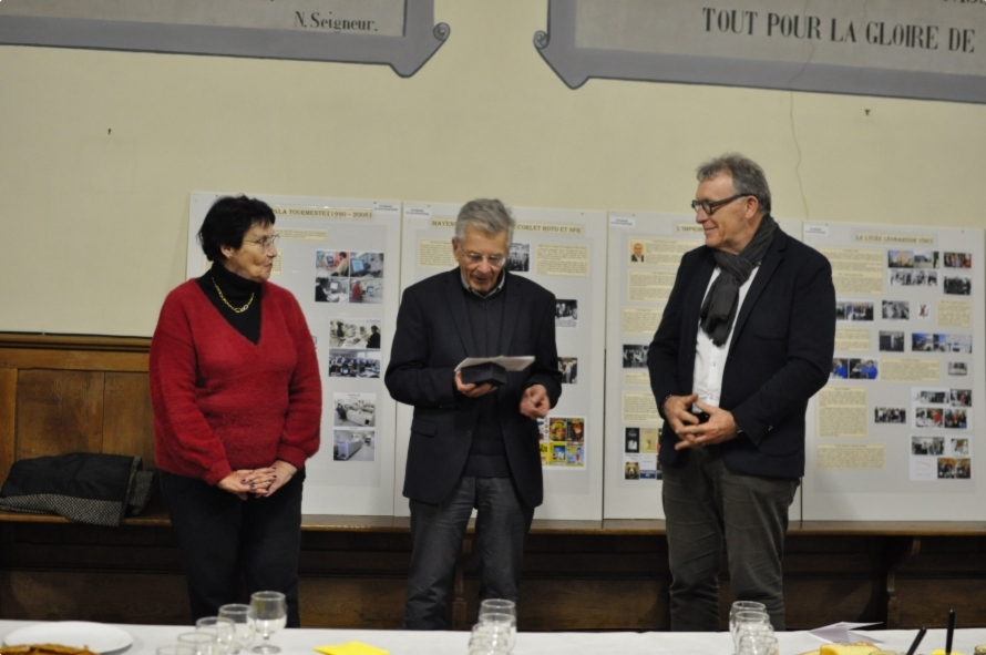 Mercredi 10 janvier 2024, en présence de plusieurs personnalités et les membres du bureau, Jean Pierre Le Scornet, maire de Mayenne remet la médaille de la ville à Michel Hubert, pour ses dix années de recherche, d'investigation et de témoignages et la réalisation des cinq tomes retraçant l'Histoire de l'Imprimerie à Mayenne.