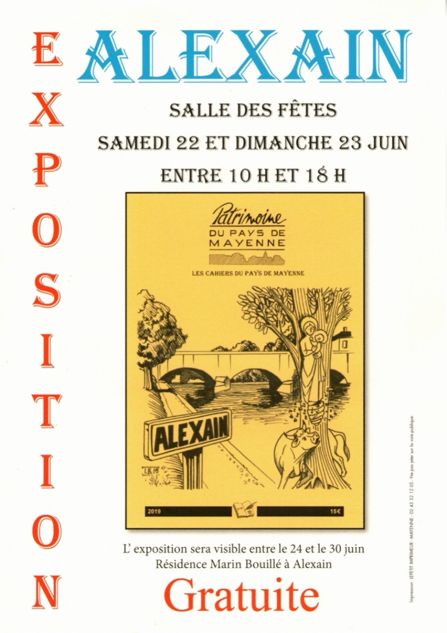 Dans le cadre de la sortie du Cahier de l'association Patrimoine du Pays de Mayenne n° 46 sur "l'Histoire de la commune d'Alexain", vous êtes invité