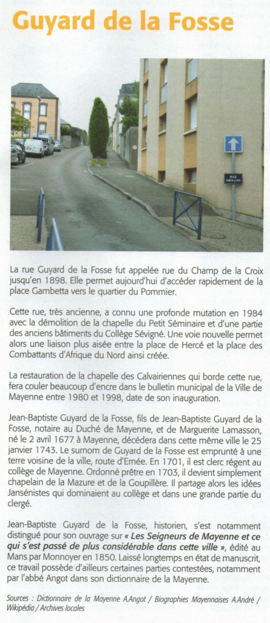 Une rue, un nom, une histoireUn nom, une rue, une histoire ...Rue Guyard de La Fosse
